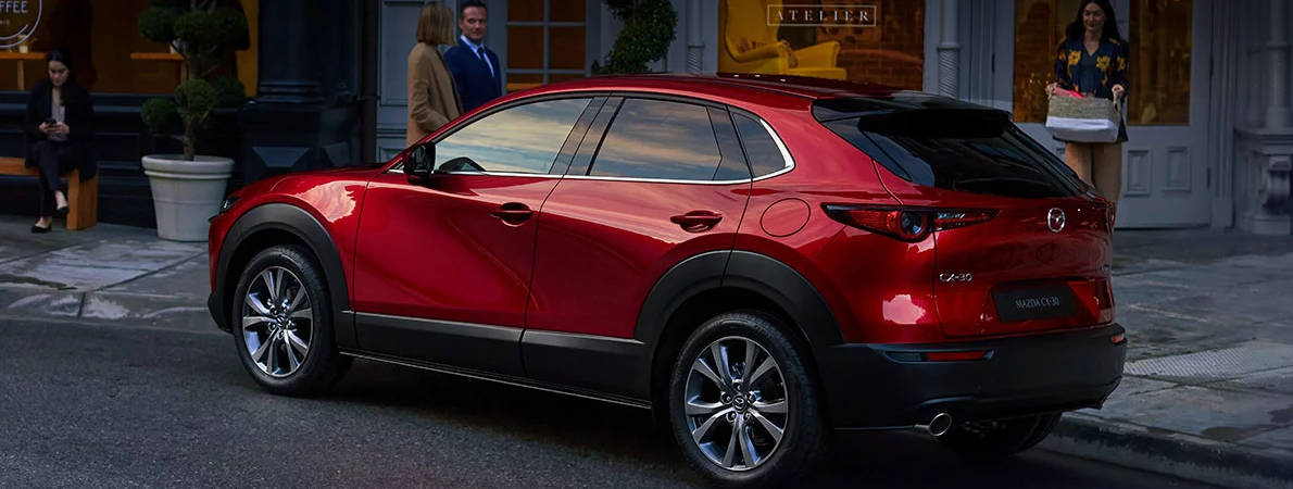 The design philosophy of the Mazda CX-30 is called “charge and release.” Imagine a single stroke of ink that starts from above the front tires, flows toward the back and release its energy. The result is a form that energizes the driver, even before they get behind the wheel.